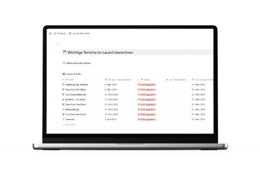 Kopiere meine erprobte Launch-Struktur und behalte alle wichtigen Aufgaben und Termine im Blick.